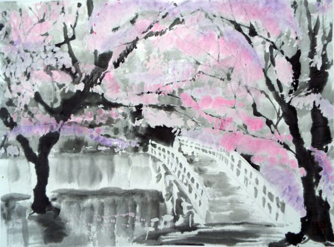 Японской живописью суйбокуга занимается с 2015 года. Член общества любителей японской живописи «Сакура кай» с 2015 г.