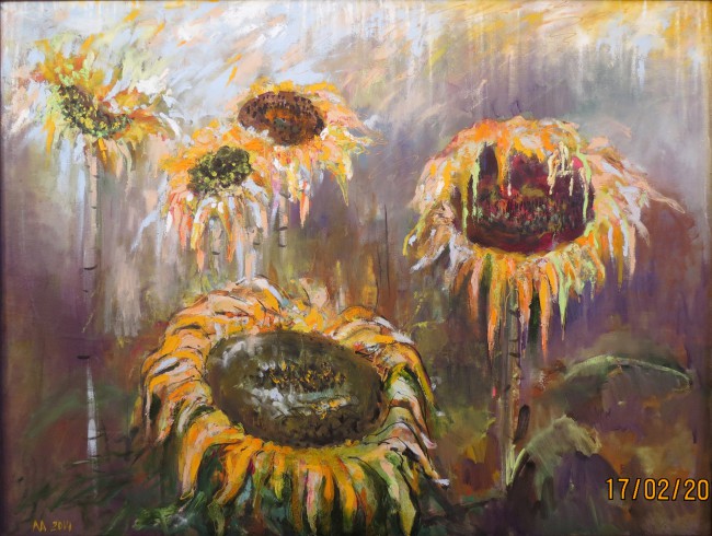 «Подсолнухи», стекло, краски
